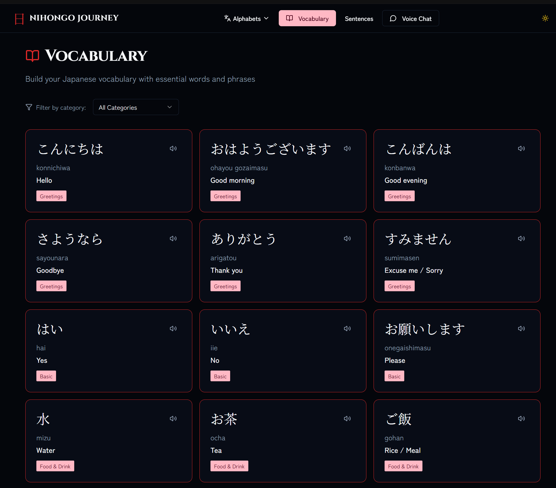 add vocabulary words, the 3 alphabets, sentences, pronunciation. and voice chats