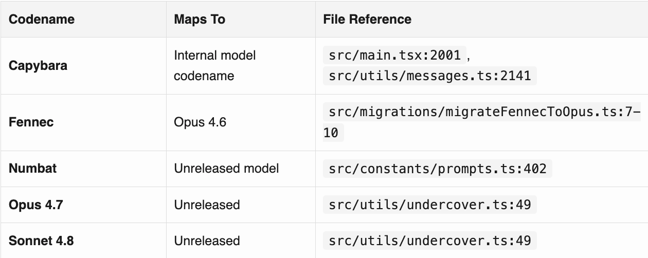 - Unreleased model version numbers (e.g., opus-4-7, sonnet-4-8)