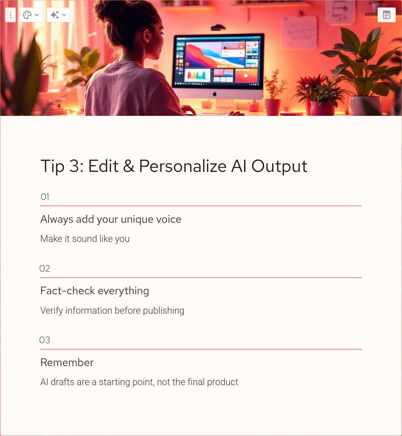 It takes trial-and-error to create content that resonates with your niche & audience. Unless you’re a small business, I recommend adding a human-in-the-loop approval step to ensure quality.
