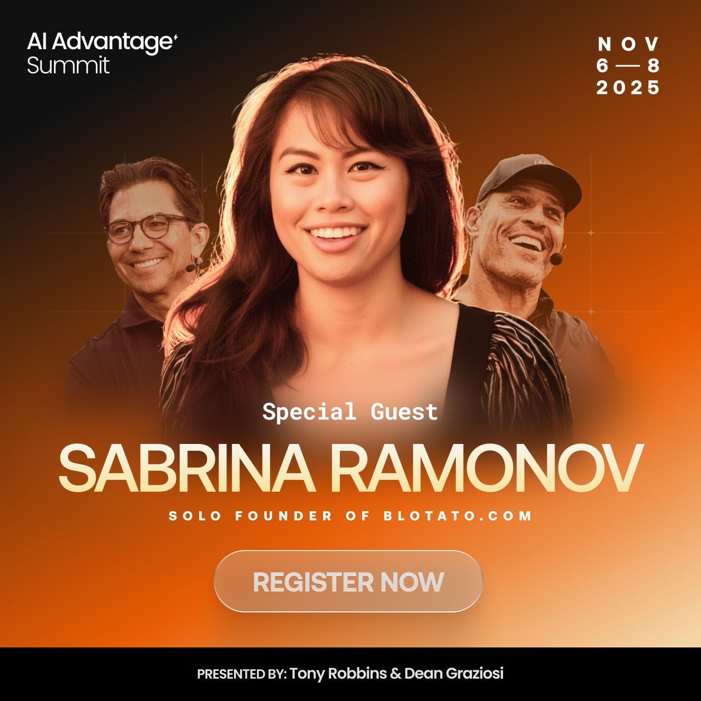 Going live Friday 1145am PST at the AI Advantage Summit with Tony Robbins and Dean Graziosi!