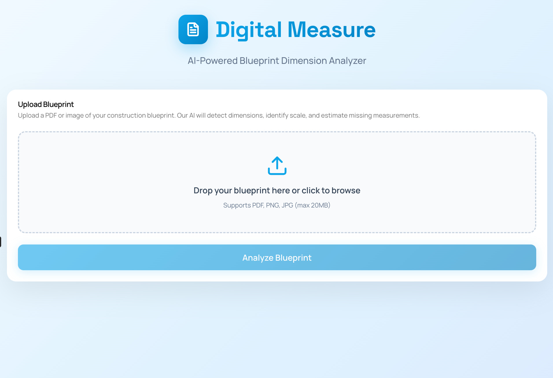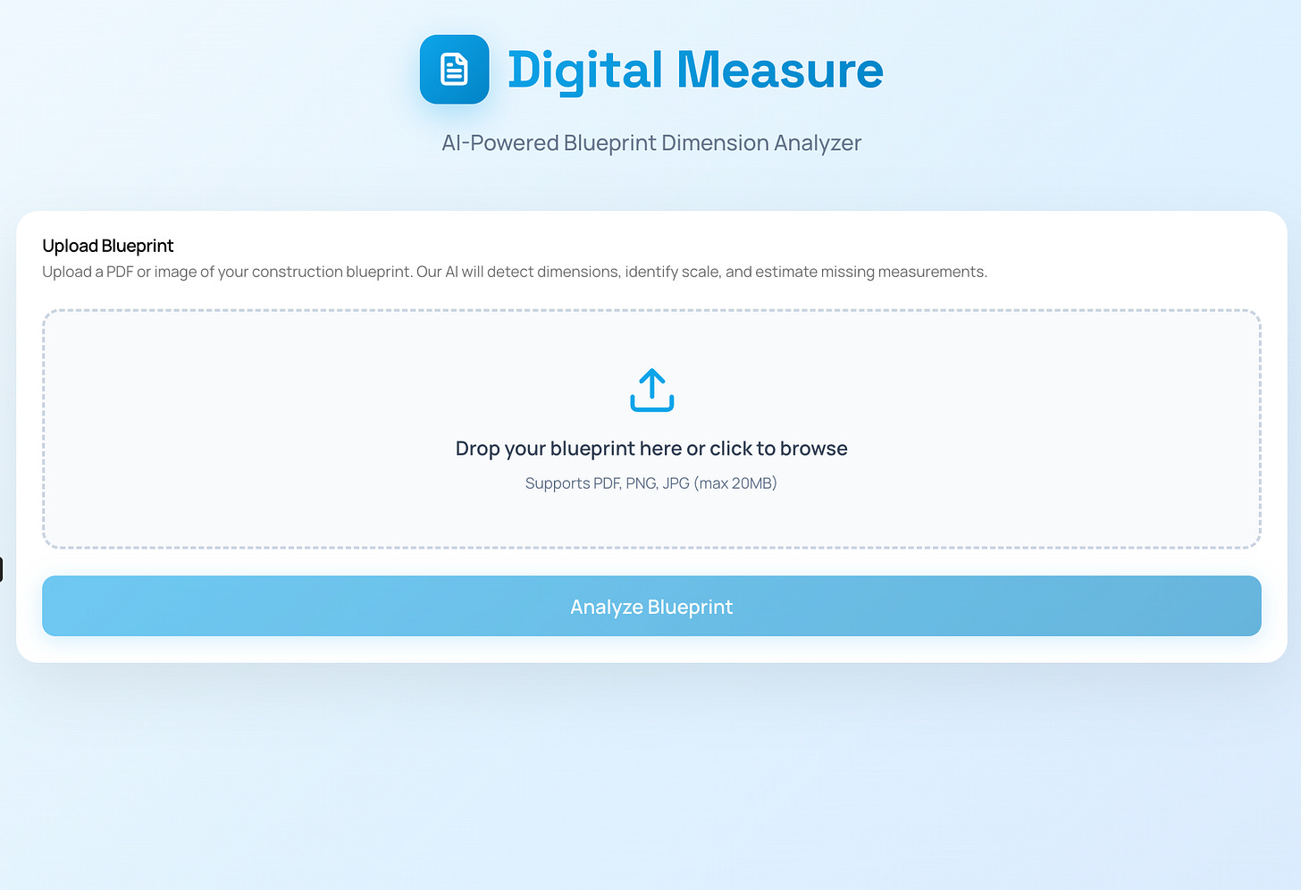 This is a digital measuring app similar to Bluebeam. You upload a PDF containing construction blueprints, and AI outputs the same PDF with estimated measures for every dimension in the blueprint.